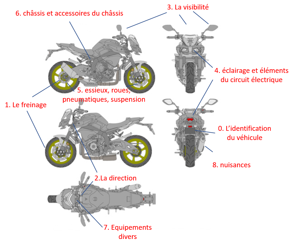 Ma moto est passée sans problème avec une seule remarque: "4.1.2a/1/4 FEUX DE ROUTE: l'orientation d'un phare n'est pas dans les limites prescrites par les exigences". D'après le gars du CT, qui est aussi un motard, toutes les motos ont la même remarque. Et c'est vrai que sur le CT de ma nouvelle moto, il y a aussi cette remarque.